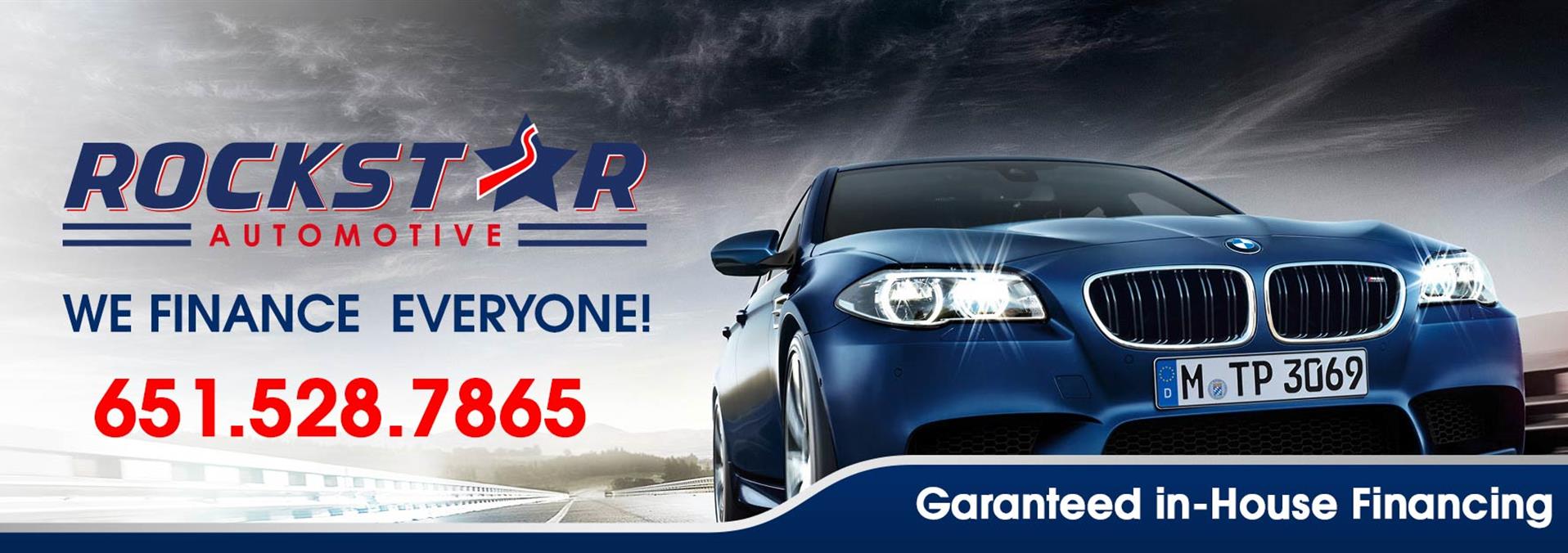 Used Car SalesWe do all our financing in house; this means you buy here and pay here. We’re the only Minneapolis used car dealership that makes your convenience our number one priority. There’s no need to fill out lengthy application forms, wait for credit checks, and then haggle with pushy salesmen who care more about making the sale than ensuring your satisfaction. Rockstar Automotive does things differently. Buy here pay here available! We make the used car buying process simple, easy, and accessible to everyone. We’re dedicated to taking the headache out of car buying by offering the largest selection of vehicles to choose from and holding ourselves to the highest standard of customer service possible. If you’re looking for the best used cars for sale St. Paul has to offer and the best customer service around, Rockstar Automotive has you covered. Give us a call, send us an inquiry, or stop by one of our three convenient locations today. Our friendly team can wait to help find the perfect used car you!